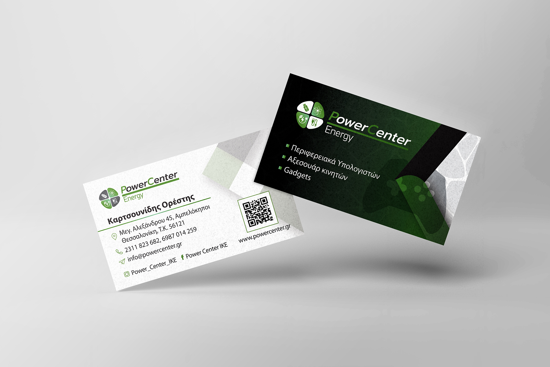 Σχεδιασμός λογοτύπου για κατάστημα που προσφέρει συμβόλαια ενέργειας και πώληση ηλεκτρονικών ειδών. Δημιουργία επαγγελματικής κάρτας για το e-shop και το φυσικό κατάστημα